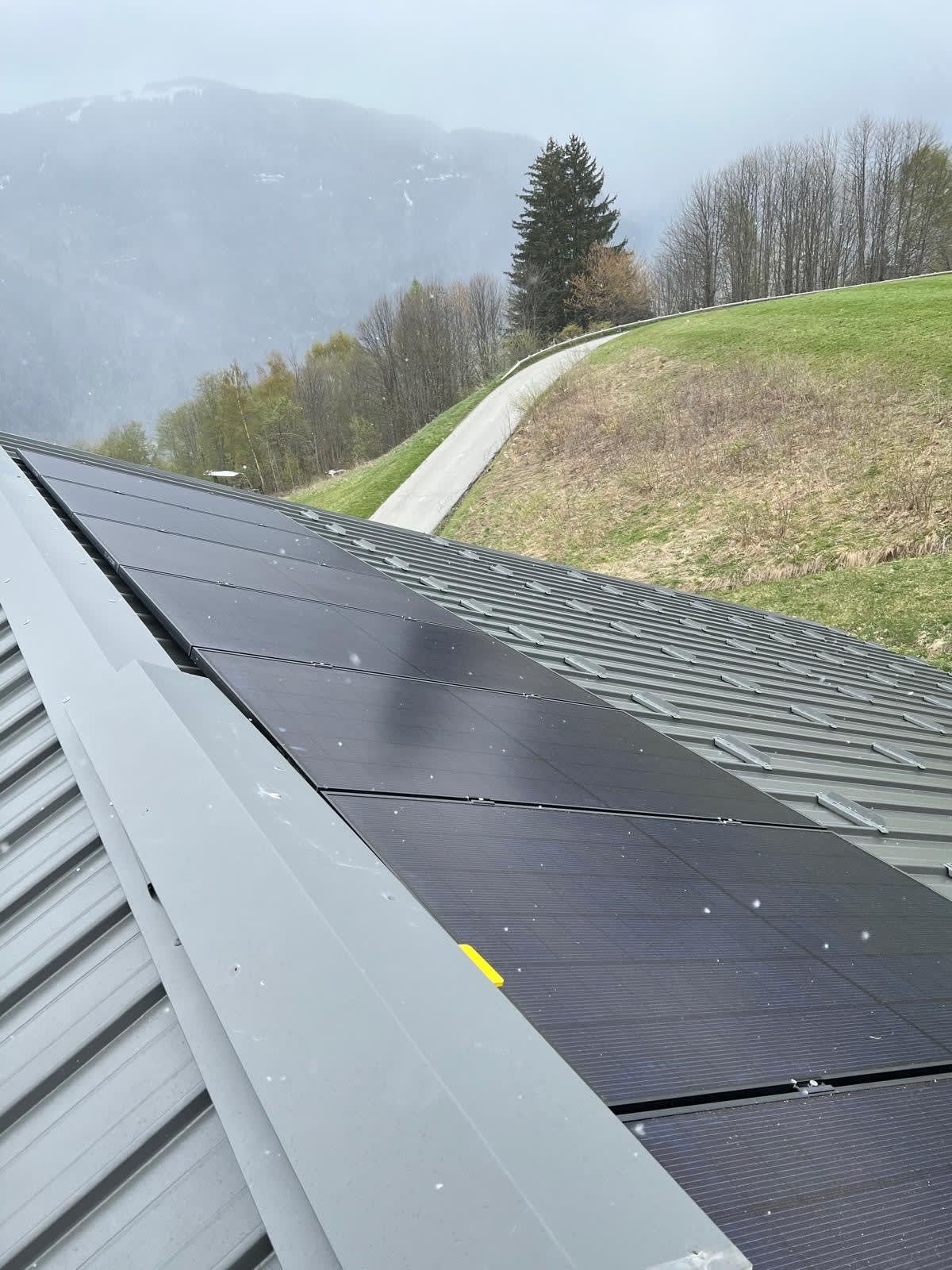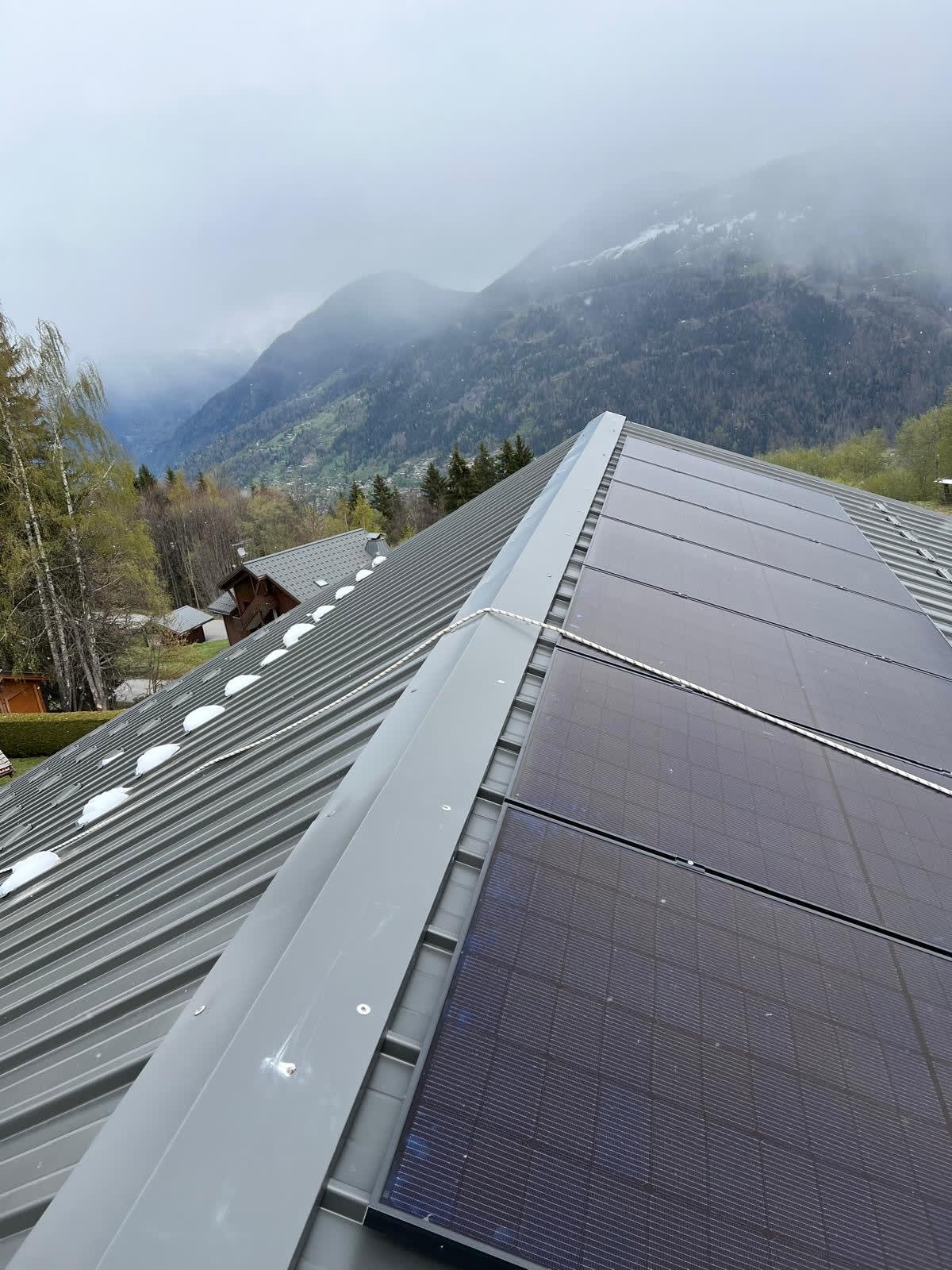 Nous sommes montés au sommet de Saint-Gervais pour réalisé ce 3kWc sur un chalet récent, accompagné des derniers flocons de la saison.